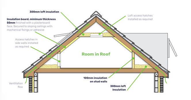 A ‘Room in Roof’ is essentially a room designed within the loft space, accessible via a permanent staircase. While these rooms typically feature sloping ceilings, the presence of certain window types, like Dorma or Velux, in structures such as bungalows, can alter this characteristic. For a deeper understanding of the various Room in Roof configurations, please refer to the examples provided below or contact our team for more details.